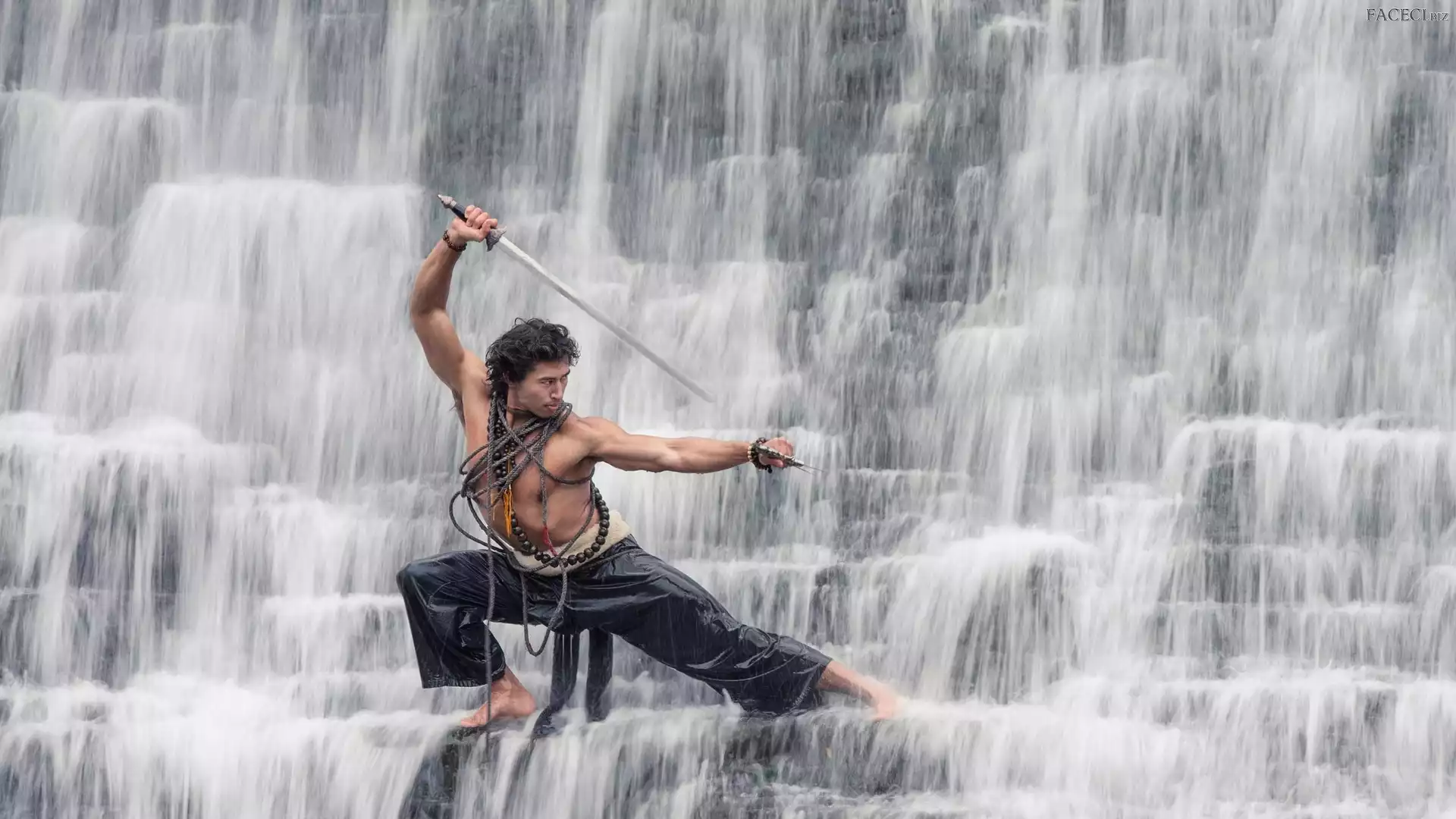 Miecz, Wodospad, Wojownik - faceci.biz